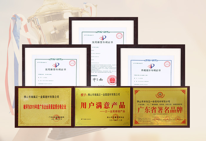 通過ISO9001認證,國家建筑材料測試中心和中國有色金屬華南產(chǎn)品質(zhì)量監(jiān)督檢驗中心合格檢測,符合美國建筑制造商協(xié)會AAMA2605-98涂層標準,被國家建設(shè)部認定為建筑鋁合金外墻板、鋁合金天花板定點生產(chǎn)企業(yè)。